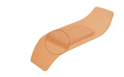 Pevné elastické náplasti v tělové barvě, směs bavlny a polyesteru, skvěle se přizpůsobí.