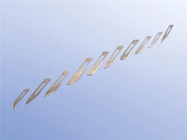 Výměnné jednorázové chirurgické ostří k nasazení na kovovou rukojeť - držátko skalpelových čepelek.