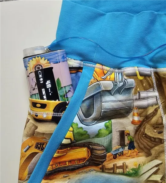 Na tepláčcích jsou kapsičky speciálně na pumpičku, umístěné v klasických kapsách. Další možnost uložení pumpičky je v pasovém lemu (tunelu).