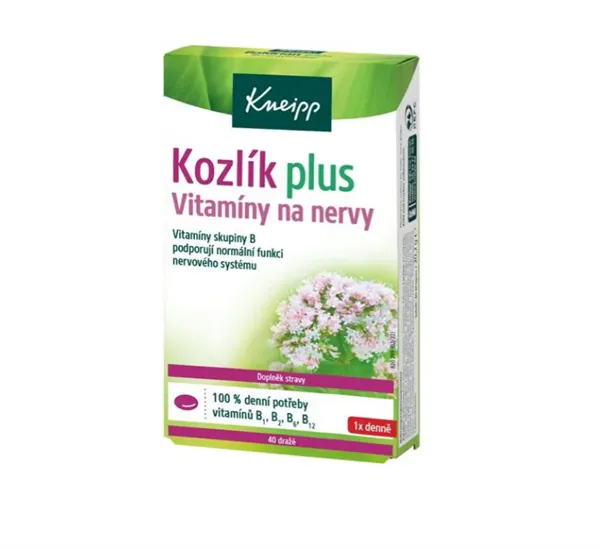 Kneipp Kozlík Plus – doplněk stravy s kozlíkem a vitamíny B pro podporu nervové soustavy a snížení únavy.