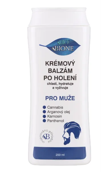 Unikátní lehký balzám po holení. Moderní elegantní prostředek každodenní péče o pleť. Snížený obsah alkoholu poskytuje dostatečnou dezinfekci drobných poranění pokožky, avšak již nepálí, dlouhodobý chladivý efekt poskytuje menthol. Hydrataci a regeneraci zajišťují panthenol, glycerin, niacinamid a extrakt cannabis. Pokožku zvláční a přituční oleje cannabis a argan. Před stárnutím pokožky a před tvorbou vrásek chrání karnosin, inositol, tokoferol a oblíbený koenzym Q10. Jemný pro pokožku, snadný roztěr, rychlé vstřebání. INULIN, urychlí obnovu přirozené kožní mikroflóry. Po použití zůstává pokožka ochlazená, zklidněná, hydratovaná s jemnou vůní. Výhodně lze použít i jako běžný denní pleťový krém. Baleno: min. 1 ks 200 ml