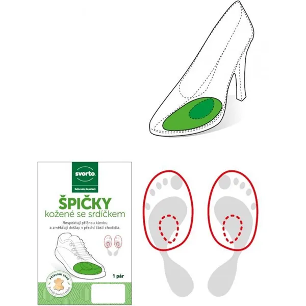 Špičky kožené se srdíčkem jsou vyrobeny z lehčené pryže, která změkčí došlap při bolestivé chůzi a otlacích v přední části nohy.