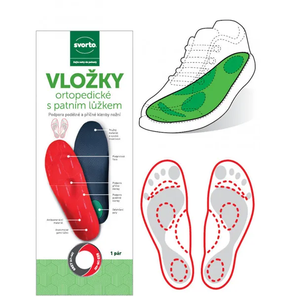 Vložky s patním lůžkem. Jsou určeny především do obuvi, která z výroby není vybavena dostatečně tvarovanou vnitřní stélkou. Základem vložek je výlisek z pružného a pevného materiálu EVAC. Patní lůžko a podélná klenba drží nohu ve správném osovém postavení. Hlavním přínosem ortopedických vložek je, že rovnoměrně rozkládají tlak a váhu na plochu chodidla, odlehčují přetěžovaným místům a vyrovnávají postavení chodidel. Správná poloha dolních končetin je důležitá pro správné držení celého těla. Špatné osové postavení chodidel může negativně ovlivnit stav kolen, kyčlí i zad.